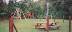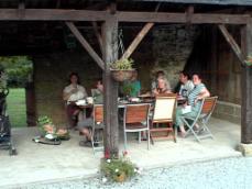The Garden slopes gently down to the river Blavet so we have a safe area for the children to play in with swings, boules pitch and picnic table.There is a separate washroom for the gites with large sink, freezer space and washing machine. Under the hanger in the courtyard is a BBQ and dining area that is a perfect place for enjoying the last of the evening sun.
